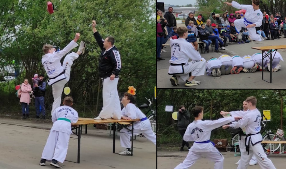 VíceBrzy ráno se probouzí naši studenti do chladného deštivého rána. Ale počasí nás neodrází, a tak se setkáme všichni na dětském dnu Motoshow, abychom lidem předvedli, co umíme. Po srazu se hned vydáme na generální zkoušku, kde si projdeme všechno, co máme připraveno. A pak nás už čeká jen samotné vystoupení. Ze začátku vše probíhá hladce, nástup a rozcvička byla zvládnutá na výbornou. Pak ale přejde na speciální techniky, které jsme měli provádět na plastovou přerážecí desku. Ta je však k nenalezení a my si uvědomujeme, že jsme ji nechali na místě generální zkoušky. Proto jsme museli začít improvizovat. Namísto přerážení jsme poslali Dana Petrů, aby přeskakoval své kamarády a přitom kopal Yop Chagi. Dohromady přeskočil 8 taekwondistů s perfektním kopem na terč. I přes menší nepřipravenost vybavení jsme si celou Exhibici užili, a děkujeme nejen všem zúčastněným, ale i organizátorům Motoshow.